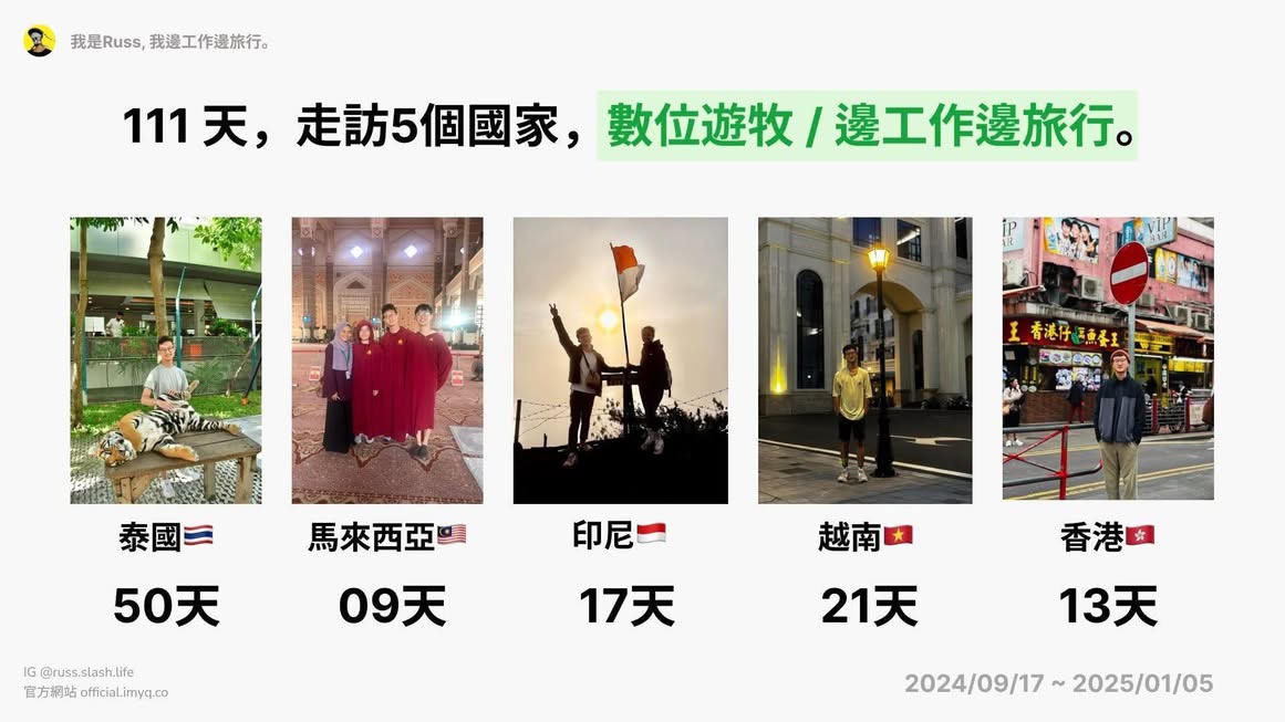 - 以一個後背包完成 111 天數位遊牧(泰國、馬來西亞、印尼、越南、香港)